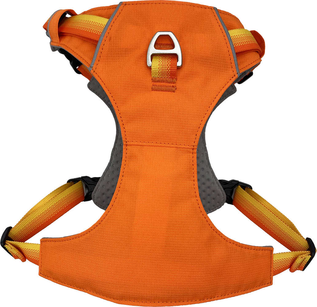 The Sports Harness is thickly padded throughout, structured, and built for maximum everyday comfort. The Pro Lite uses a lighter ripstop build with a padded chest — it’s for owners who want performance and control in a streamlined package, especially in warmer conditions or for dogs who prefer less bulk. Same dual attachment and reflective safety, different feel on the dog.
